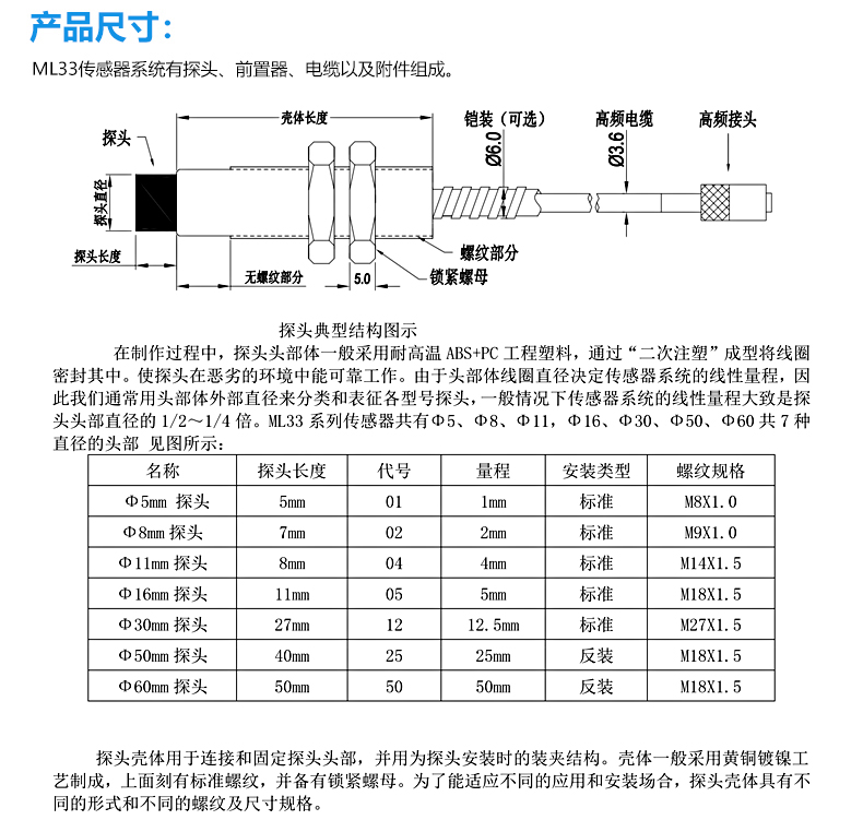 渦流位移傳感器行程可選1mm、2mm、4mm、5mm、12.5mm、25mm、50mm,有電壓、電流、數(shù)字信號(hào)RS485可選行程可選1mm、2mm、4mm、5mm、12.5mm、25mm、50mm,有電壓、電流、數(shù)字信號(hào)RS485可選